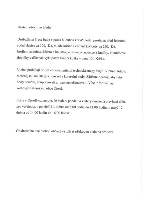 Úvod > Obec > Hlášení rozhlasu > Hlášení obecního úřadu 7.4.2022